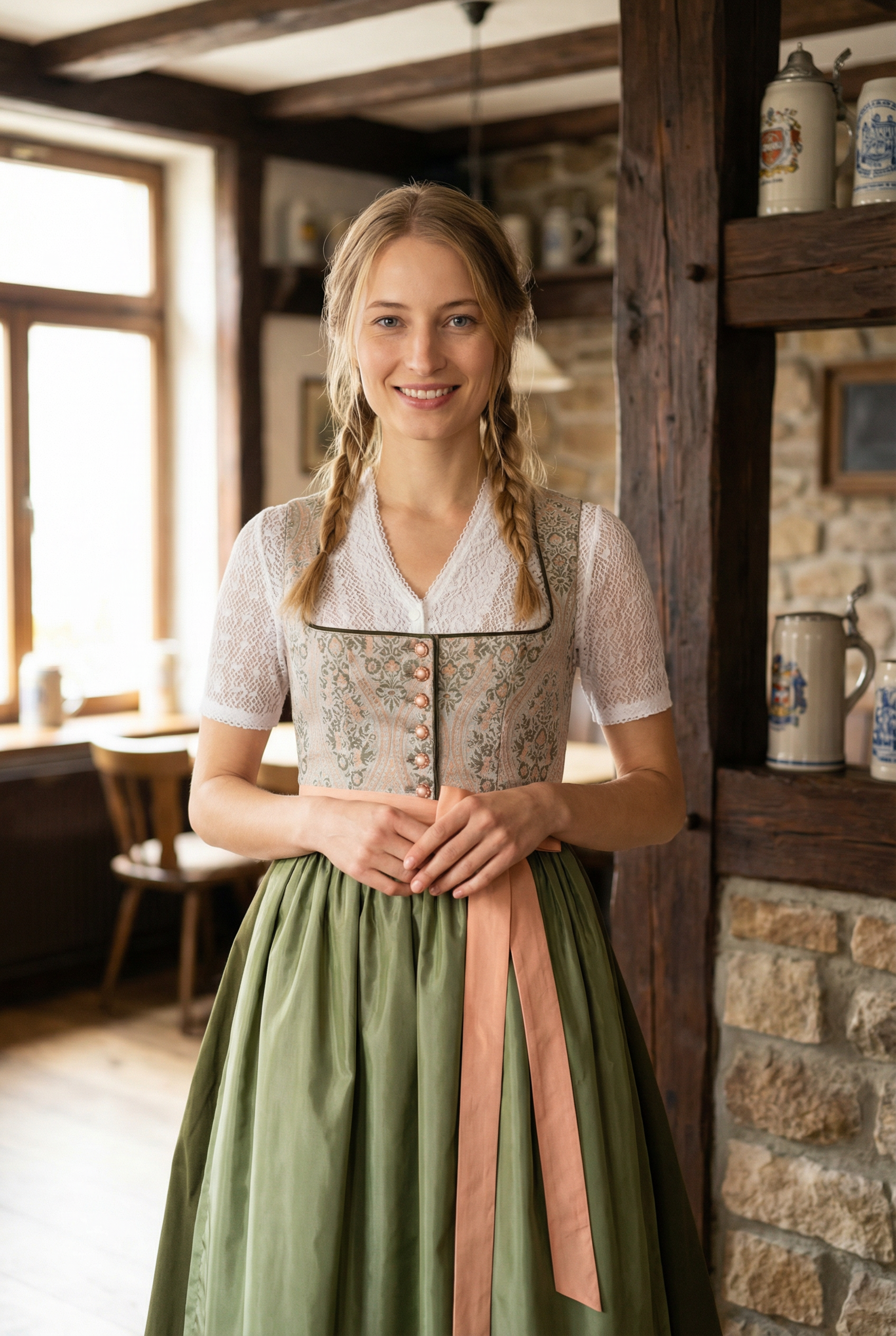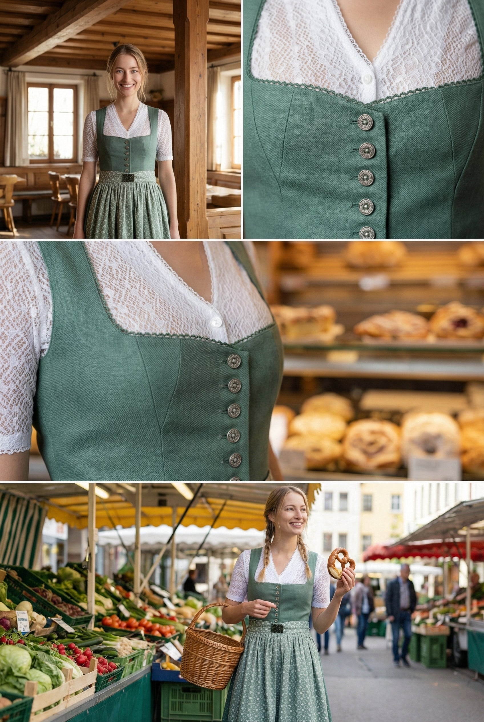 Berwin Maxi Dirndl 2pcs. 80cm "Maria" green/white