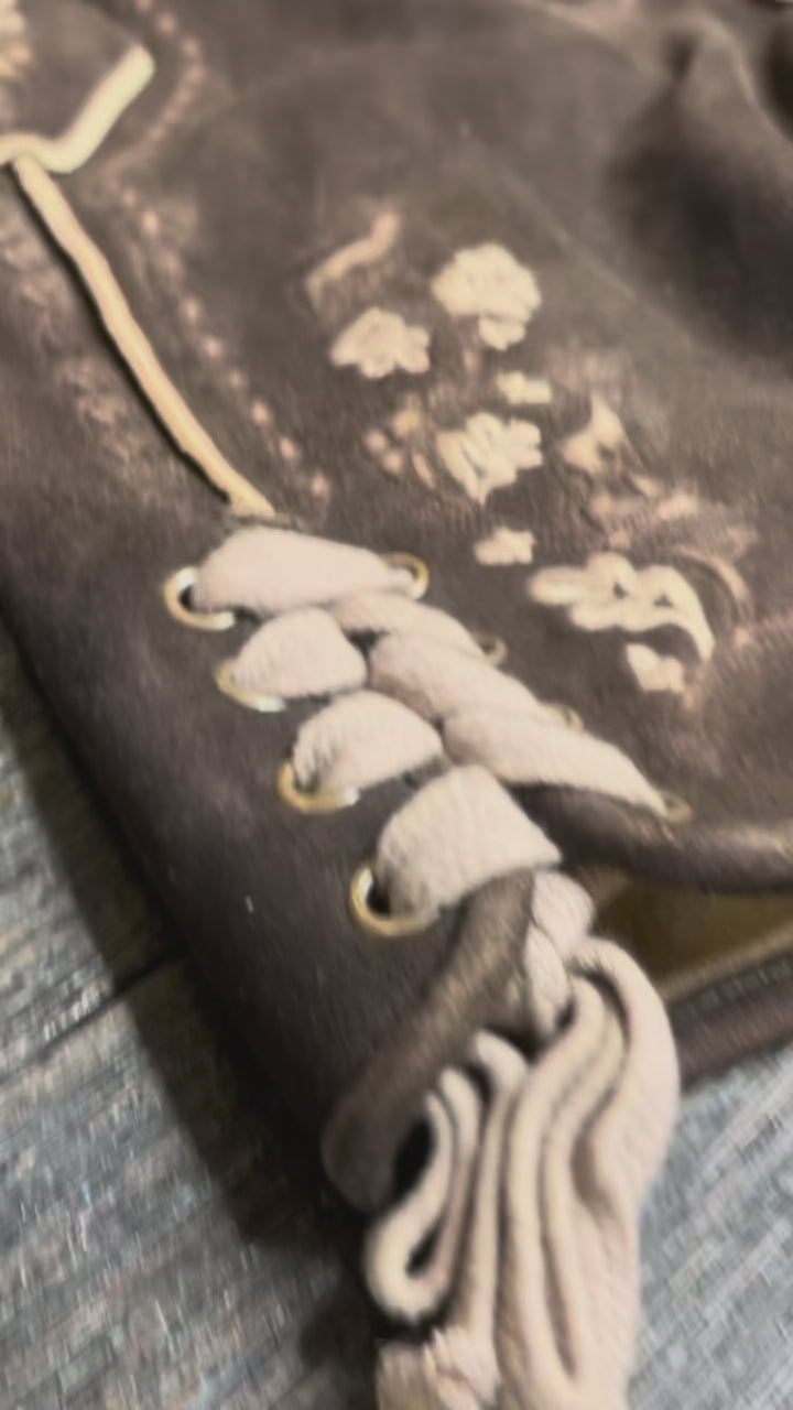 These lederhosen are crafted from exceptionally soft leather, made comfortable by a traditional chamois tanning technique, known for its breathability and supple feel. The look is brought to life with artfully incorporated embroidery, creating a unique fusion of Bavarian heritage and modern style.